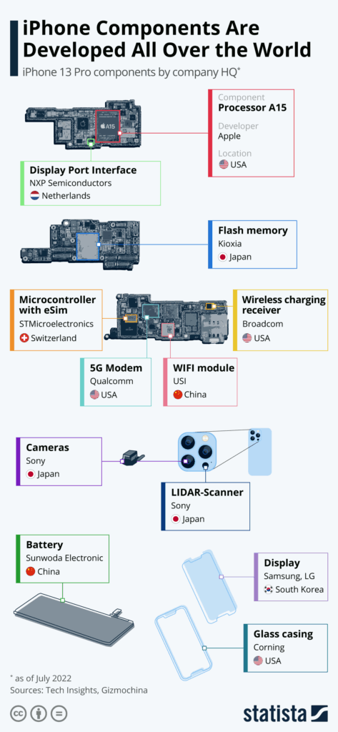 Um exemplo emblemático é o iPhone, cuja cadeia produtiva envolve mais de 50 países.
